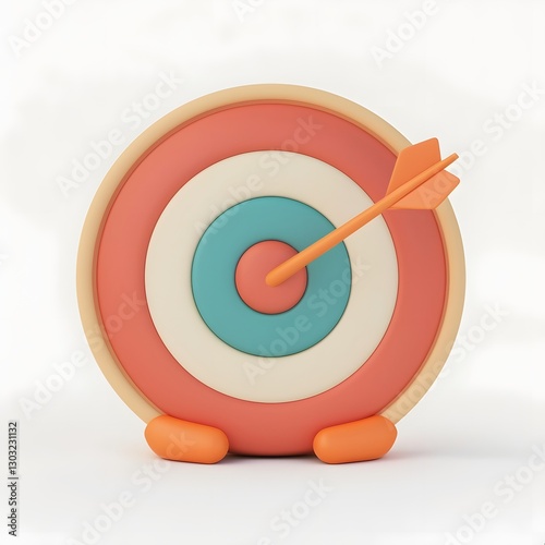 Cute and Minimalist 3D Archery Target Icon with Arrow in the Center