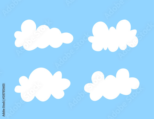 Cute and Simple White Cloud Element in Flat Vector Style for Kids and Nature Themes