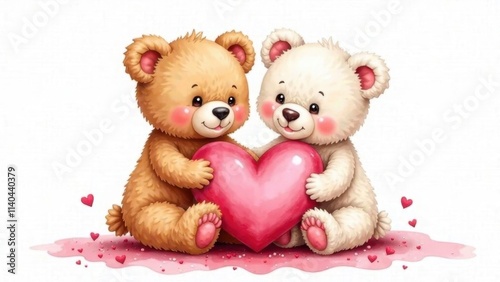 Cute bear cubs with heart on white background, postcard or postcard mockup for valentine's day, birthday, mother's day