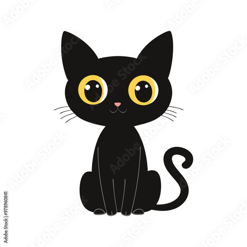 Cute Black Cat Halloween Vector Design Element, Cute Halloween Cat Vector Clipart Design.