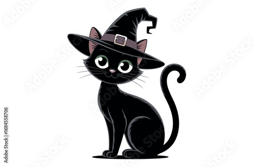 Cute Black Cat in Witch's Hat with Halloween Pumpkin