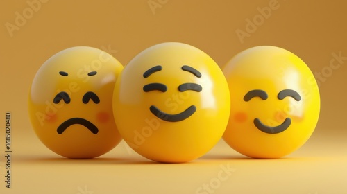 Cute Cartoon 3D Smiling Face: Yellow Character with Joyful Expression, Vector Icon Illustration