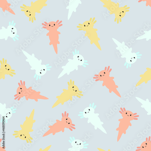 Cute cartoon axolotl. Seamless pattern. Vector.
