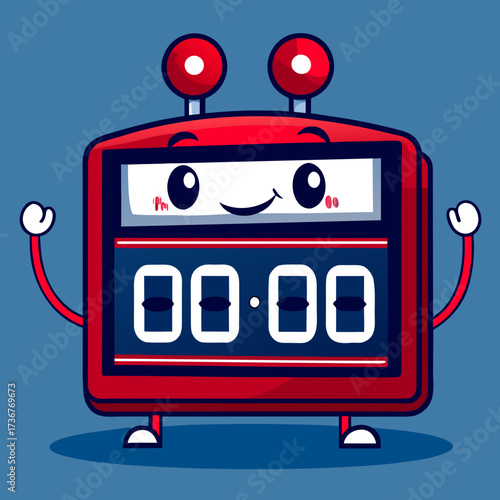 Cute Cartoon Countdown Timer with Happy Face – Red Digital Timer Vector Illustration