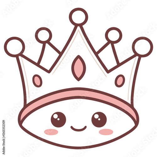 Cute Cartoon Crown With Face and Pink Accents on Transparent Background Design