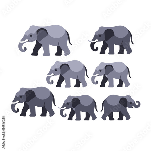 Cute Cartoon Elephants Illustration- Adorable Gray Elephant Group- Perfect for Kids Designs and Educational Resources- Vector Image of Seven Elephants_