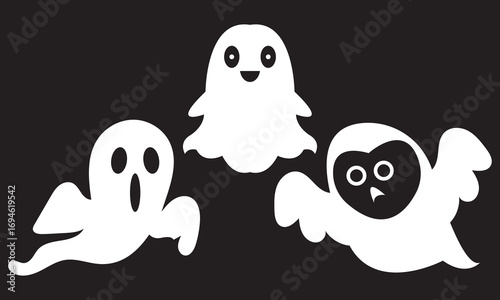 Cute cartoon ghost icons for Halloween design. Vector illustration of three playful cartoon ghosts with expressive faces, perfect for Halloween decorations, party invitations, and seasonal designs.