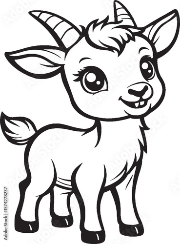 Cute Cartoon Goat with Big Eyes and Curved Horns – Farm Animal Illustration for Kids