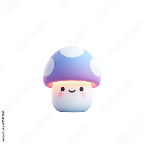 Cute Cartoon Mushroom Night Light with Smiling Face in Soft Glow on Transparent Background