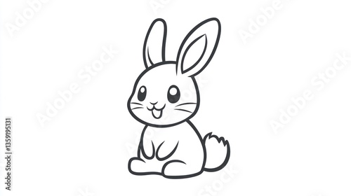 Cute cartoon rabbit illustration, simple line art, children's book, coloring page, educational, digital drawing, vector graphics, print design