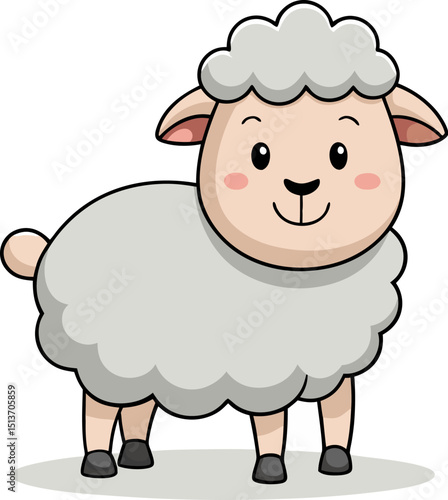 Cute cartoon sheep icon with simple white fluffy wool and pink face
