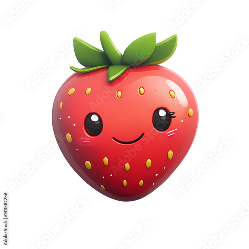 Cute cartoon strawberry character with a smiling face, vibrant colors, and playful design