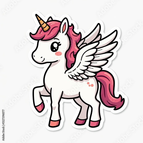 Cute Cartoon Unicorn with Wings and Pink Mane, Adorable Fantasy Animal