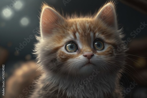 Cute cat close-up. Illustration. 3d. Generated by AI.