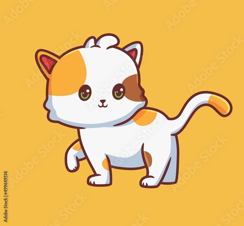 cute cat walking looking behind. isolated cartoon animal illustration. Flat Style Sticker Icon Design Premium Logo vector. Mascot Character