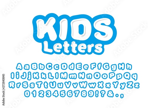 Cute childrens letters isolated on white background. Ready font, alphabet for the design of childrens prints, designs and more. Bright vector letters for print.