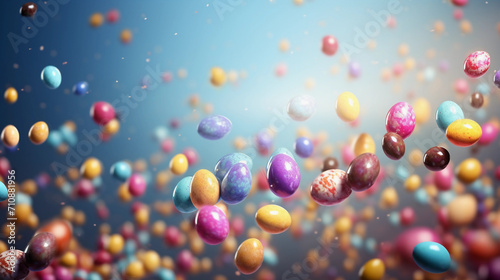 cute colorful easter eggs falling down like rain from sky. wallpaper background texture for ads, cards, banners,