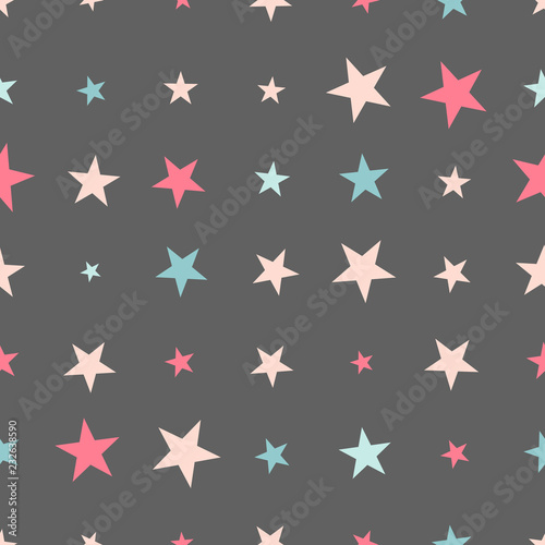 Cute colorful star seamless pattern on white. Funny festive background, wrapping paper. Vector illustration.