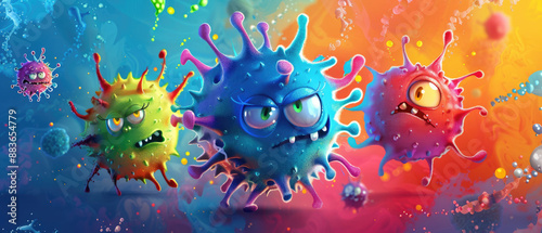 Cute colorful virus monsters. looking microscopic medical illustration of some cells floating around