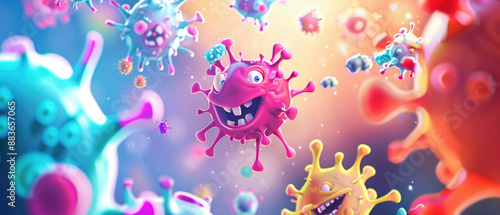 Cute colorful virus monsters. looking microscopic medical illustration of some cells floating around
