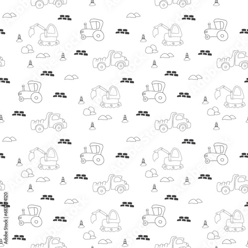 Cute construction site Seamless Pattern, Cartoon building area background, vector Illustration
