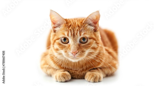 Cute ginger cat sitting and looking at the camera ,isolated on white background