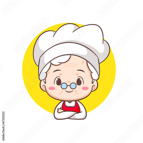 Cute grandmother chef cartoon. Grandma cooking logo vector art. People Food Icon Concept. restaurant and homemade culinary logo