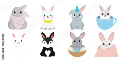 Cute Grey Bunny Clipart Bundle – Pastel Watercolor Style
