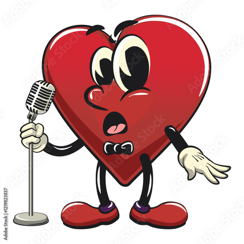 Cute heart vektor illustration mascot character on front of the mic become a stand up comedian, work of hand drawn