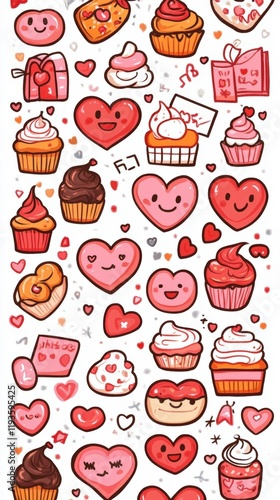Cute hearts and delightful sweets create an adorable pattern filled with joy and sweetness, perfect for celebrating love and happiness any day