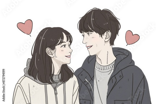 Cute illustration of a couple in love with hearts symbolizing affection and joy