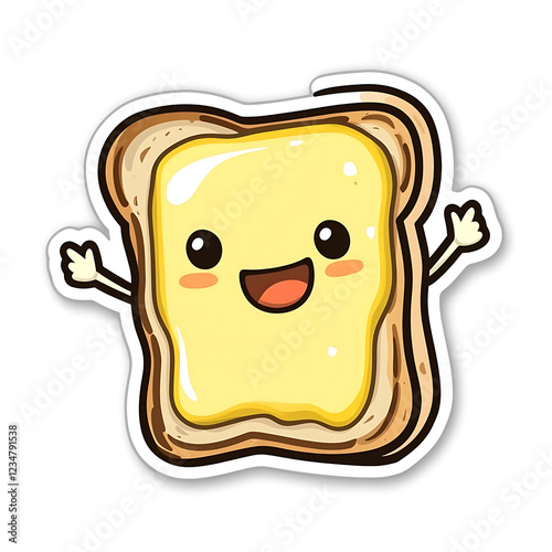 Cute kawaii toast slice with a happy face and cheerful arms in a playful design