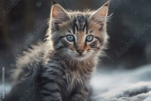cute kitten in the snow. Generated by AI. Generative AI