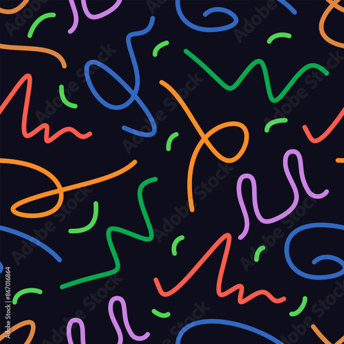 Cute line art pattern. Fun colorful line doodle seamless pattern