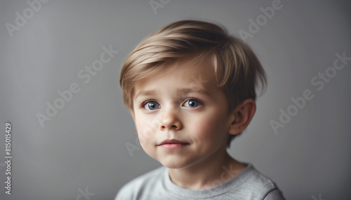Cute little boy on a gray background, isolated white background
