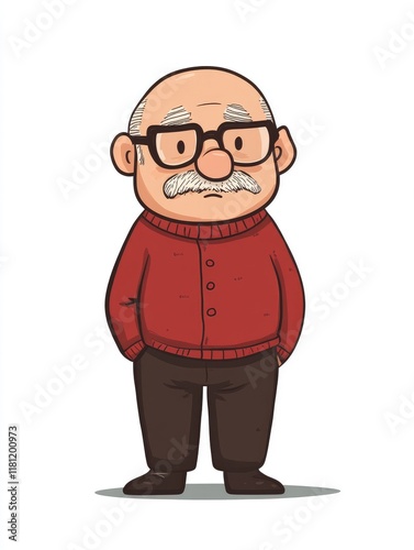 Cute old man with cartoon stickmen in simple lines and flat illustration on white background. Simple drawing style for high resolution graphic.