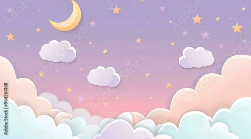 Cute pastel purple background with clouds, stars and moon vector presentation design for children's show