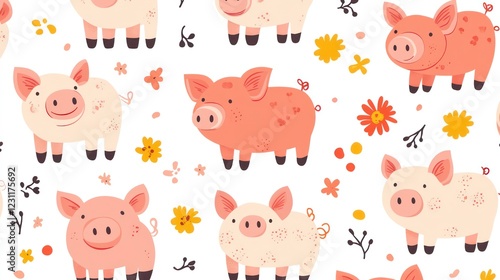 Cute pig seamless pattern background. Vector illustrations for gift wrap design.