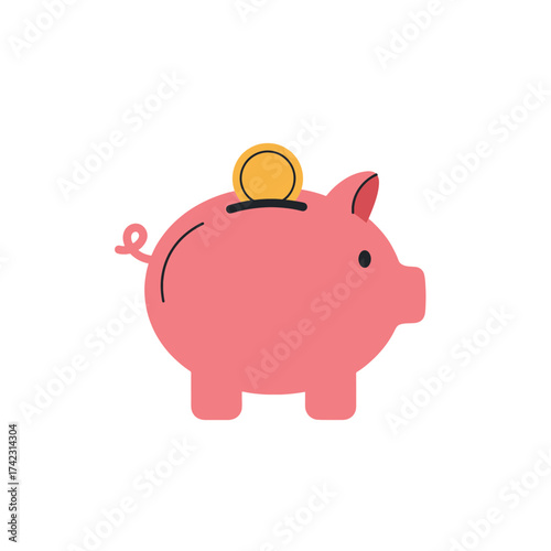 Cute piggy bank with coin on back for savings and finance