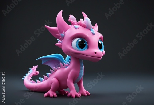 Cute pink and blue little baby dragon with big blue eyes. Fantasy monster.