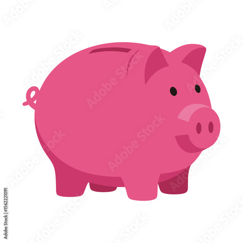Cute Pink Piggy Bank Flat Design Vector Illustration - Money Saving Finance Graphic