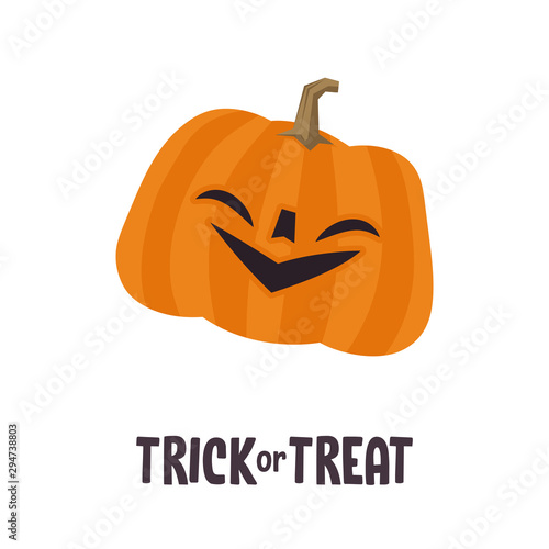 Cute pumpkin illustration. Halloween funny character. Flat vector.