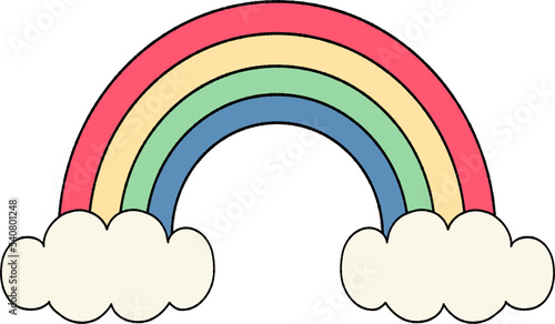 Cute rainbow with clouds, Hand drawn line art style vector illustration.