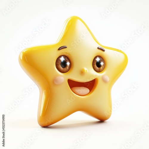 Cute Star With Sparkling Eyes And A Cheerful Smile Isolated On White Background