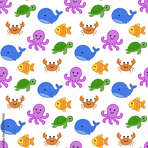 Cute Underwater Sea Animals Pattern - Octopus, Fish, Turtle, Crab, Whale