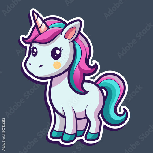 Cute Unicorn Vector Sticker Design with Flat Colors on Black Background