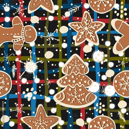Cute Winter Seamless Pattern with gingerbread cookies.