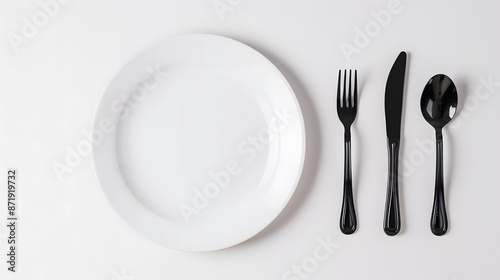 Cutlery, fork, knife, spoon and empty plate on a colored background. AI Generated