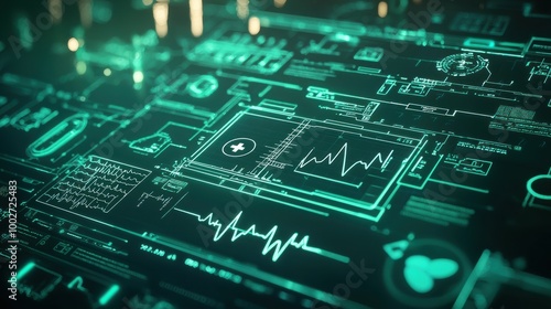 Cutting Edge Digital Circuit Board with Pulsing Green Energy
