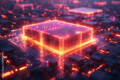 Cutting-Edge Semiconductor Technology: Multi-Layered FinFET Transistor in 3D with Neon Accents
